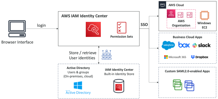 - "IAM Identity Center"에 ID 스토어가 내장되어 있다.