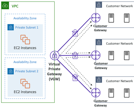 - AWS VPN CloudHub: 사이트를 연결하는 "hub-and-spoke" VPN 모델이다.