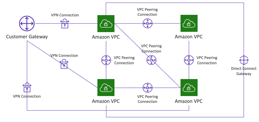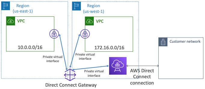 - Direct Connect Gateway: 다양한 AWS 지역에 있는 많은 VPC에 Direct Connect를 설정한다.