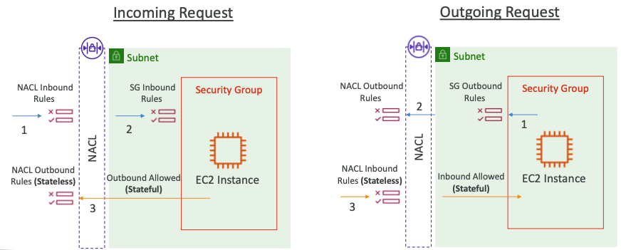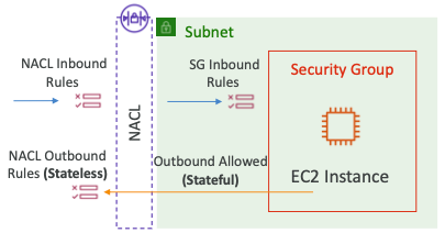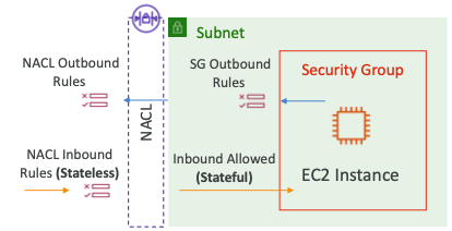 - Security Group: Stateful, EC2 인스턴스 레벨에서 작동한다.