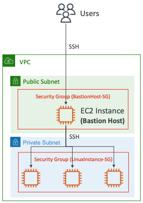 - "Bastion Host"를 사용하여 Private EC2 인스턴스에 SSH를 적용할 수 있다.