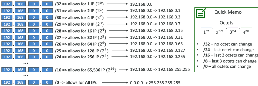 - Security Groups 규칙 및 AWS 네트워킹에서 일반적으로 사용된다.