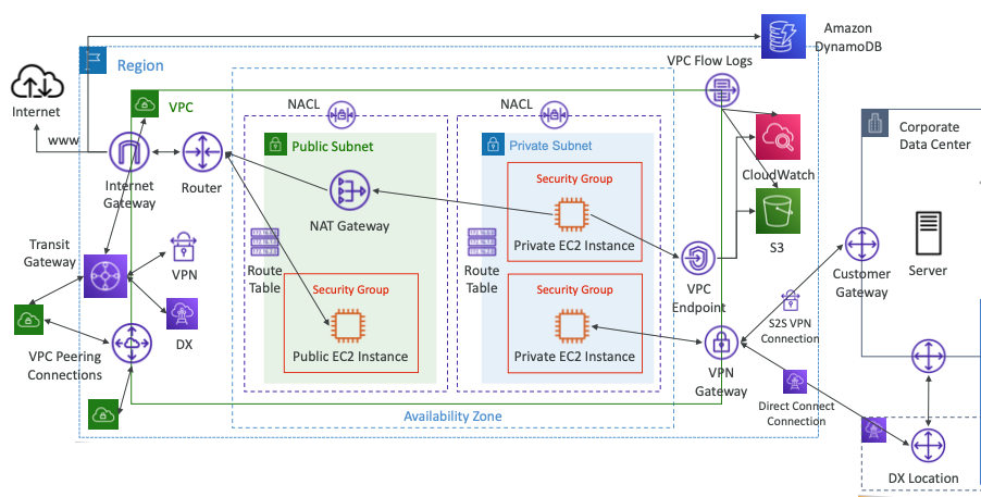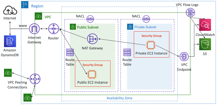 - VPC Endpoint: VPC내에서 AWS 서비스(S3, DynamoDB, Cloud Formation, SSM)에 대한 Private 액세스를 제공한다.