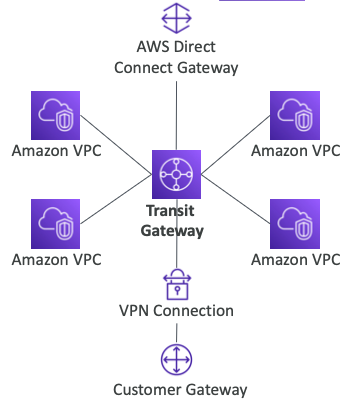 - Transit Gateway: VPC, VPN 및 DX를 위한 Peering 연결