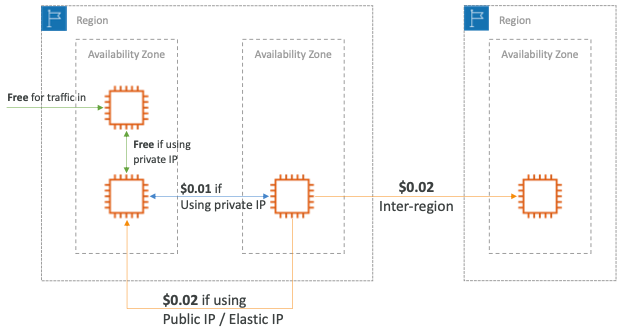 - 비용 절감과 네트워크 성능 향상을 위해서 Public IP 대신 Private IP를 사용하는 것이 좋다.