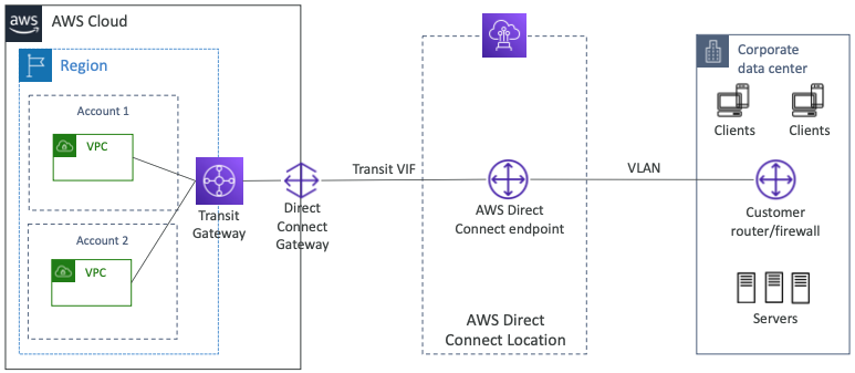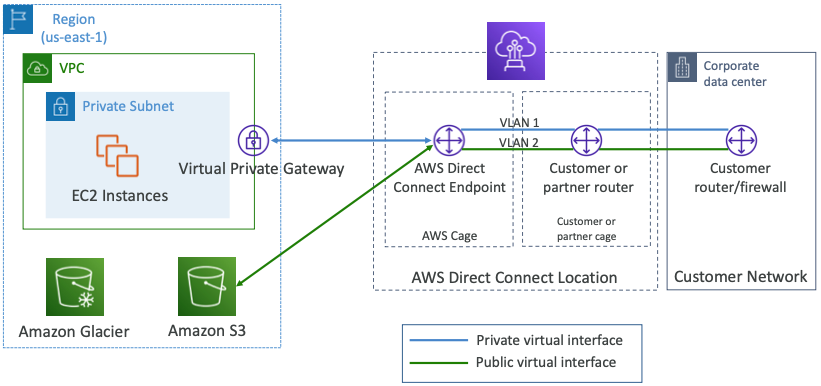 - Direct Connect: VPC에 Virtual Private Gateway를 설정하고 AWS Direct Connect Location에 직접 개인 연결을 설정한다.