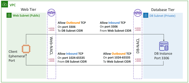 - NACL: Stateless, 서브넷의 인바운드, 아웃바운드 규칙, 임시(Ephemeral) 포트