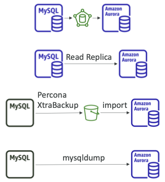 - 옵션 1: Percona XtraBackup을 사용하여 Amazon S3에서 파일 백업 생성한다. Amazon S3에서 Aurora MySQL DB를 생성한다.