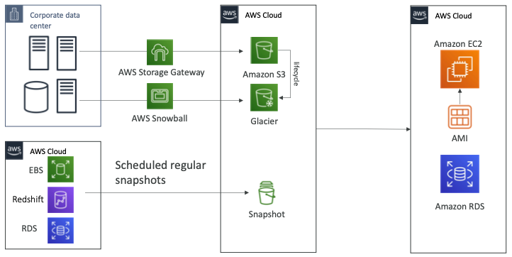 - EBS 스냅샷, RDS 자동 백업/스냅샷 등을 활용할 수 있다.