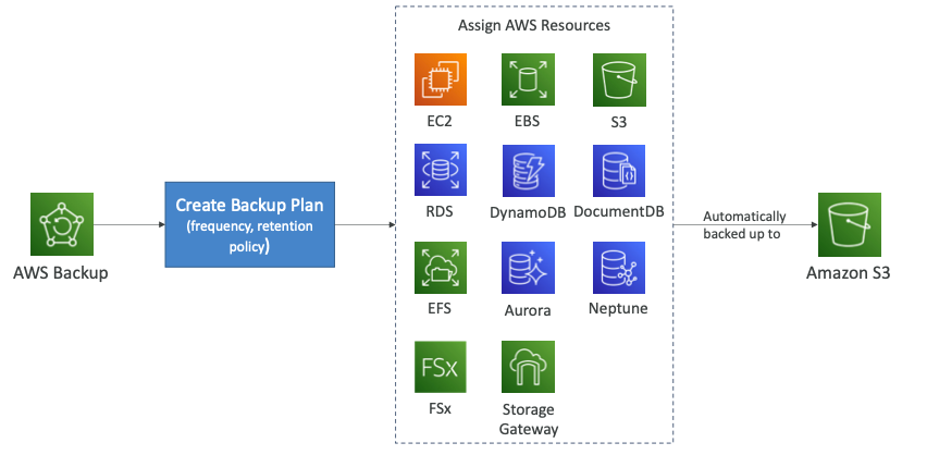 - AWS 서비스 전반에서 중앙 집중식으로 백업 관리 및 자동화가 가능하다.