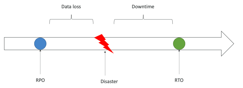 - RPO는 복구 시점 목표로 "재해 발생 시간"으로 부터 발생하는 데이터 유실을 의미한다.