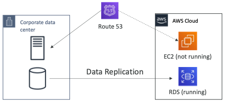 - 아래의 이미지 기준으로 이미 "AWS Cloud"에서 시스템이 가동 대기 중이며, 데이터는 복제되고 있기 때문에 "Backup & Restore" 전략보다 복원 속도가 빠르다.