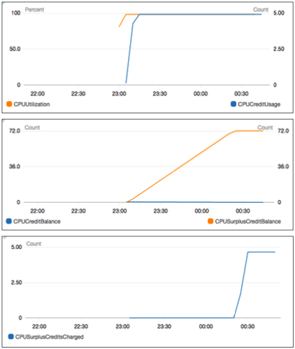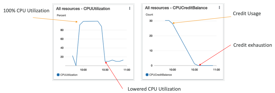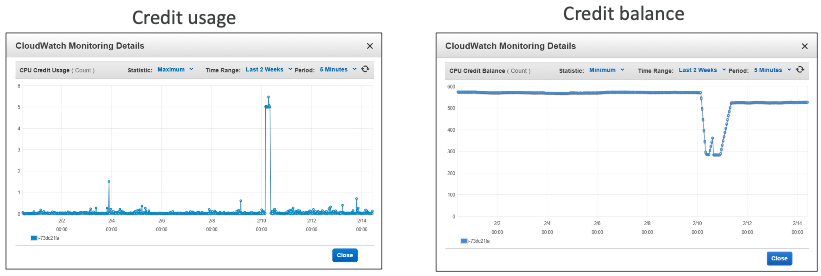 - CPU: CPU 사용률 + 크레딧 사용량/잔량(버스트(T) 시리즈인 경우)