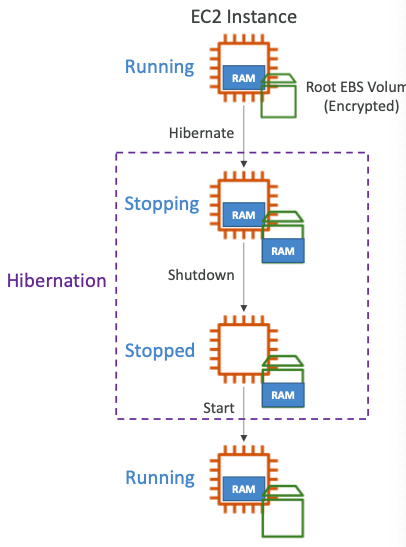 - 내부적으로 RAM의 상태가 루트 EBS 볼륨의 파일에 기록된다.