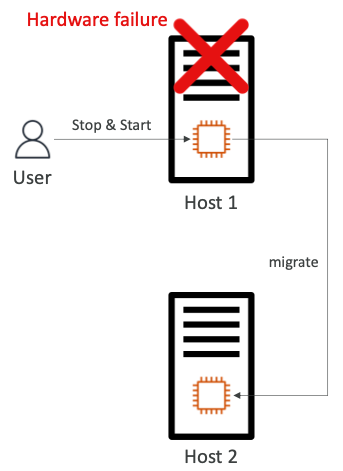 - 해결방법은 인스턴스를 중단(Stop)하고 다시 시작한다. 이때 인스턴스가 새로운 호스트로 마이그레이션 된다.