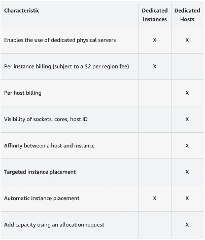 - Dedicated Instances: 다른 고객이 요청자의 하드웨어를 공유하지 않는다.
