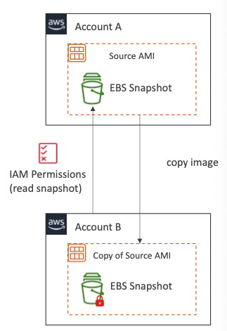 - 소스 AMI의 소유자는 AMI(EBS 스냅샷)를 지원하는 스토리지에 대한 읽기 권한을 부여해야 한다.