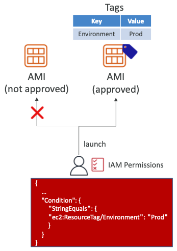 - IAM 정책을 사용하여 사용자가 사전 승인된 AMI(특정 태그로 태그가 지정된 AMI)에서만 EC2 인스턴스를 시작하도록 할 수 있다.