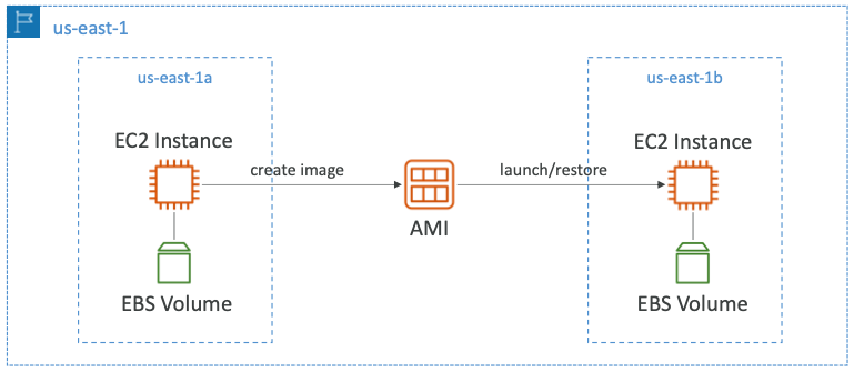 - 이미지를 예시로 "us-east-1a"에서 "us-east-1b"로 옮길 수 있다.