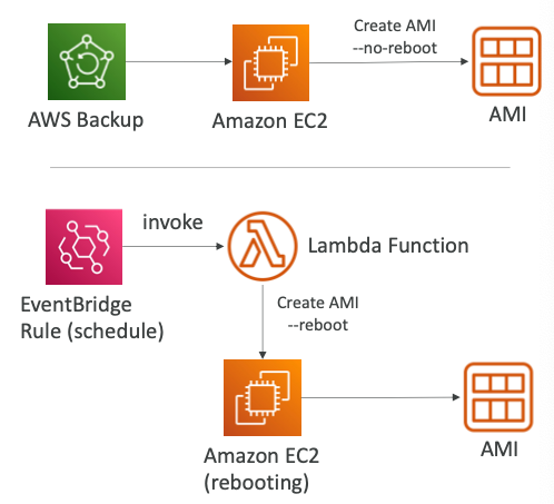 - 데이터 무결성을 유지하려면 AMI를 생서하는 동안 재부팅 매개변수를 제공해야 한다. (EventBridge + Lambda + CreateImage API with Reboot)