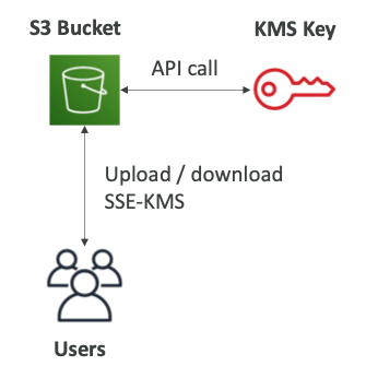 - 선택적으로 버킷 정책을 사용하여 "암호화를 강제"하고 암호화 헤더(SSE-KMS 또는 SSE-C)없이 S3 객체를 PUT하는 API 호출을 거부할 수 있다.