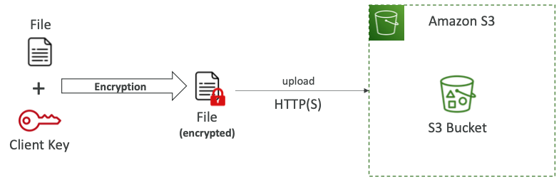 - S3 클라이언트 측 암호화 라이브러리와 같은 클라이언트 라이브러리를 사용해야 한다.