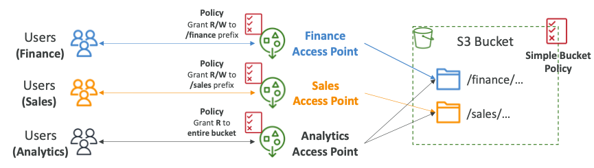 - 액세스 포인트는 S3 버킷의 보안 관리를 단순화한다.