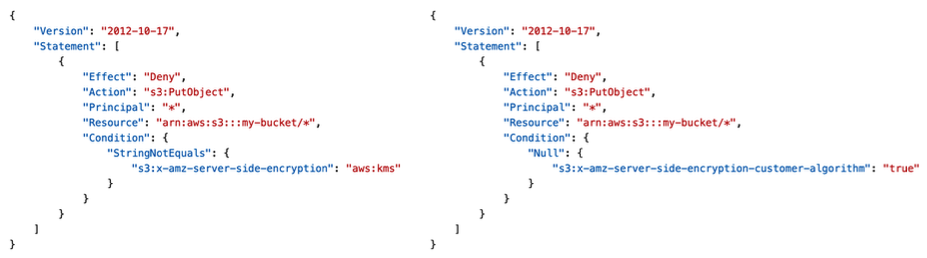 - 버킷 정책은 기본 암호화 이전에 평가된다.