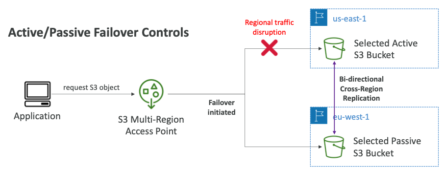 - 장애 조치 제어 - 몇 분 안에 다양한 AWS Region의 S3 버킷 간에 요청을 이동할 수 있다. (Active-Active 또는 Active-Passive)