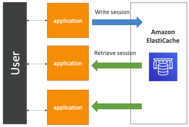 - 애플리케이션은 ElastiCache에 세션 데이터를 저장한다.