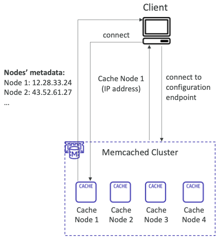 - 일반적으로 DNS 엔드포인트를 사용하여 클러스터의 개별 캐시 노드에 수동으로 연결해야 한다.