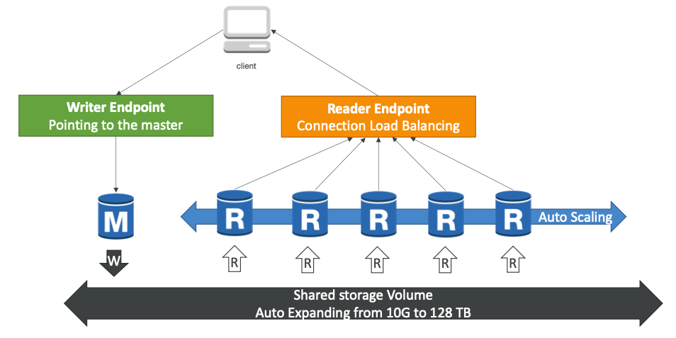 - Reader Endpoint: 모든 읽기 전용 복제본에 읽기 작업을 균등하게 분할한다.