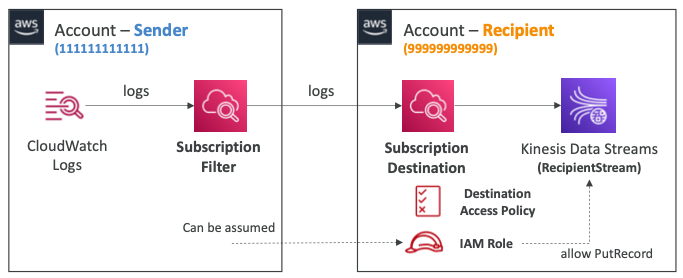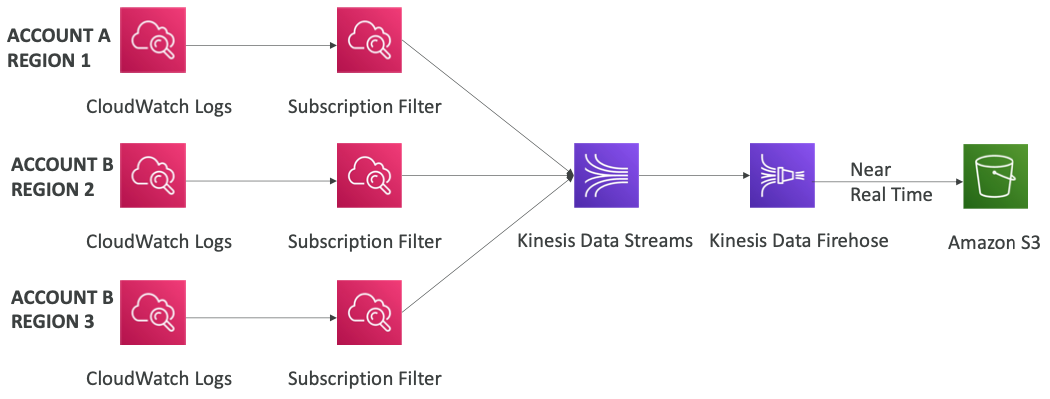 - Subscription Filter를 통해 CloudWatch Logs에서 특정 계정이나 Region의 Kinesis Data Stream으로 데이터를 집계할 수 있다.