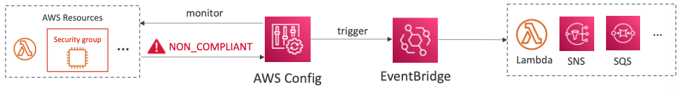 - AWS 리소스가 규정을 준수하지 않을 때, EventBridge를 사용하여 알림을 트리거한다.