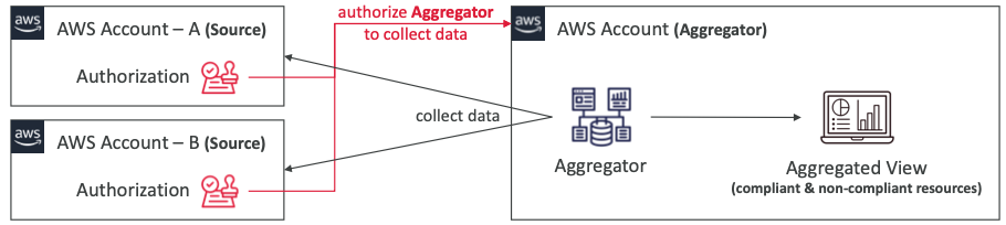 - 여러 계정 및 리전에 걸쳐 규칙, 리소스 등을 집계한다.