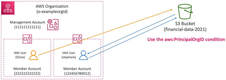 aws:PrincipalOrgID조건 키를 사용하여 AWS 조직의 계정에서 IAM 보안 주체에 대한 액세스를 제한한다.