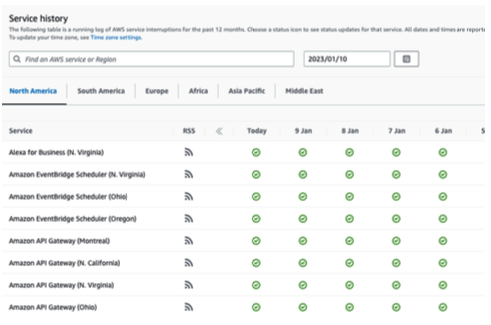 - 모든 지역, 모든 서비스 상태를 표시한다.
