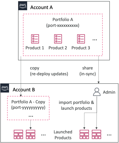 - 포트폴리오 참조를 공유한 후 공유 포트폴리오를 수신자 계정으로 가져온다. (원본과 동기화를 유지)
