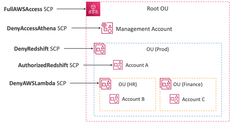 - Redshift 액세스는 제외된다. (Prod OU의 명시적 거부)
