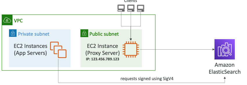 - ES 도메인(예. CURL, Kibana 등)에 대한 서명되지 않은 요청을 허용한다.