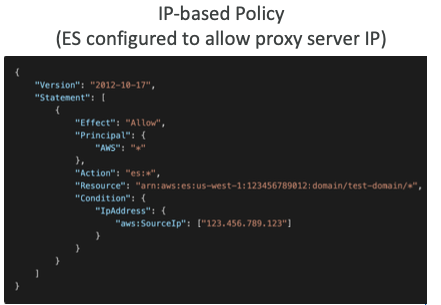 - ES 도메인에 대한 액세스를 IP 주소 또는 CIDR 블록으로 제한하는 데 사용되는 리소스 기반 정책이다.