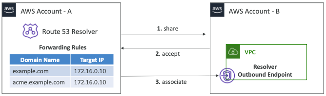- 여러 계정과 VPC가 있는 경우 DNS로 전달 규칙을 확장할 수 있도록 지원한다.