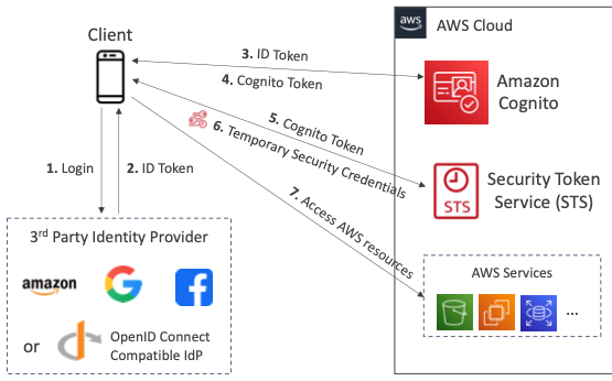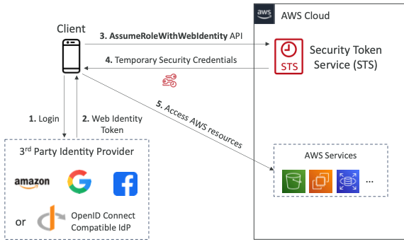 - Web Identity Federation을 사용할 수 있지만 권장되는 방법이 아니다.