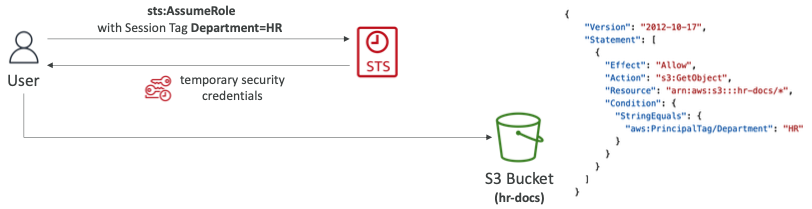 "Condition": {"StringEquals": { "aws:PrincipalTag/job-category": "iamuser-admin" }}"Condition": {"StringLink": { "s3:prefix": [ "", "home/", "home/${aws:username}/" ]}}