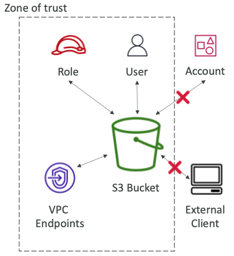- 신뢰 영역 (Zone of Trust)은 AWS 계정 또는 AWS 조직에 상응하는 영역을 의미한다.