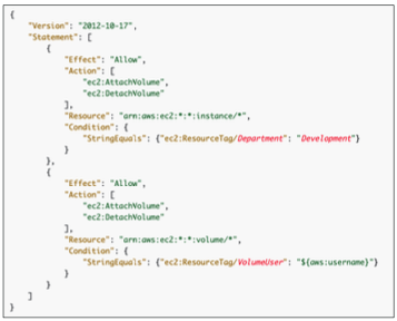Department: Development가 포함된 경우에만AttachVolume,DetachVolume작업을 허용하고 있다.