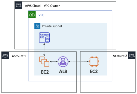 - 예를 들어, "Account 1"이 EC2 인스턴스와 ALB를 배포하였을 때, "Account 2"는 통신은 할 수 있지만 서로의 리소스를 볼 수 없다.
