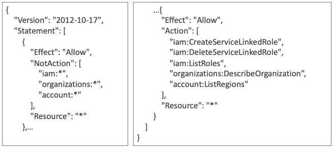 Deny대신에NotAction을 사용했다는 점이다. - 만약 좌측의 정책에서
