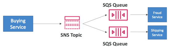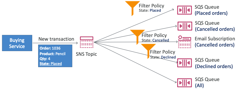 - "Buying 서비스"가 SNS 토픽으로 데이터를 전송한다.