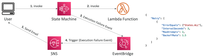 - 예: "State Machine" 실행이 실패하는 경우 이메일을 통해 알림을 받도록 EventBridge를 설정할 수 있다.